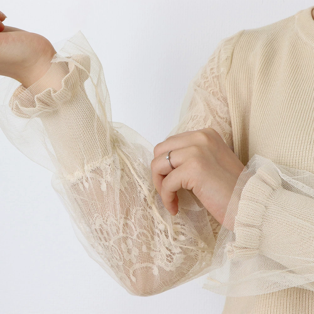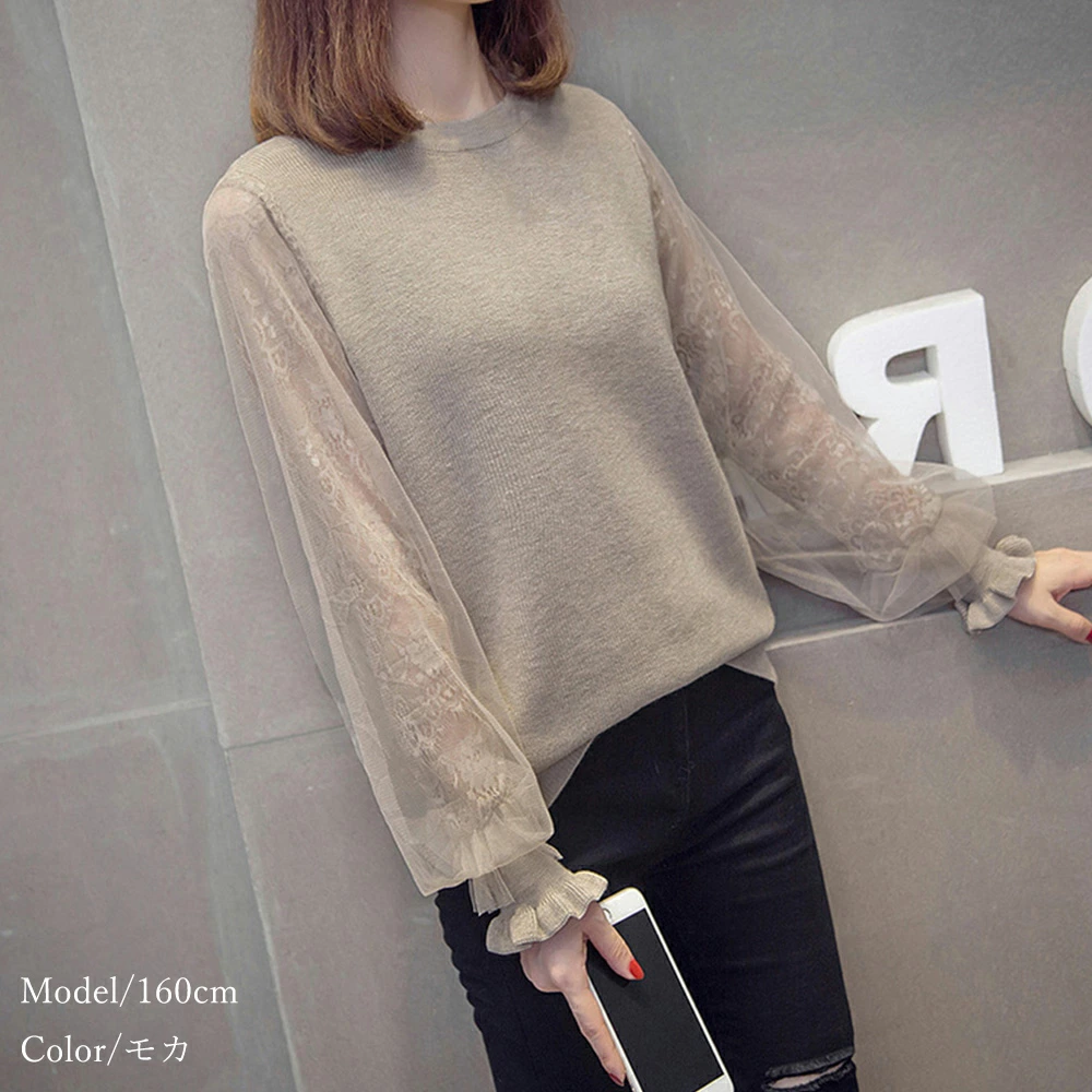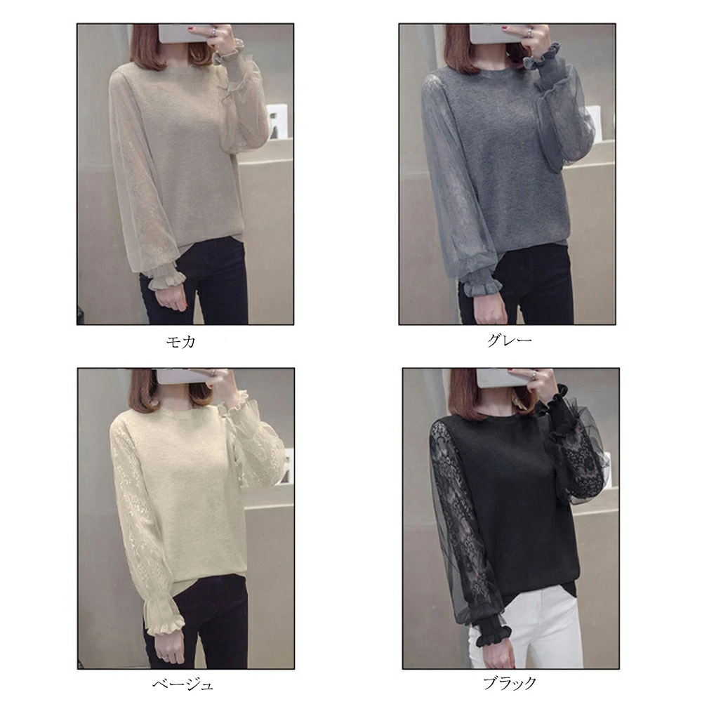 ★送料無料★ボリュームチュール素材がキュートなニットトップス♪個性的で大人可愛いスタイルに☆ 長袖 ニットカットソー トップス レディース 袖チュール切り替え カットソー おしゃれ ニットセーター 韓国ファッション 服 かわいい 可愛い おしゃれ レディースファッション カジュアル フリル レース シースルー 長袖 刺繍 ブラック ベージュ モカ グレー 大人可愛い (Q)
