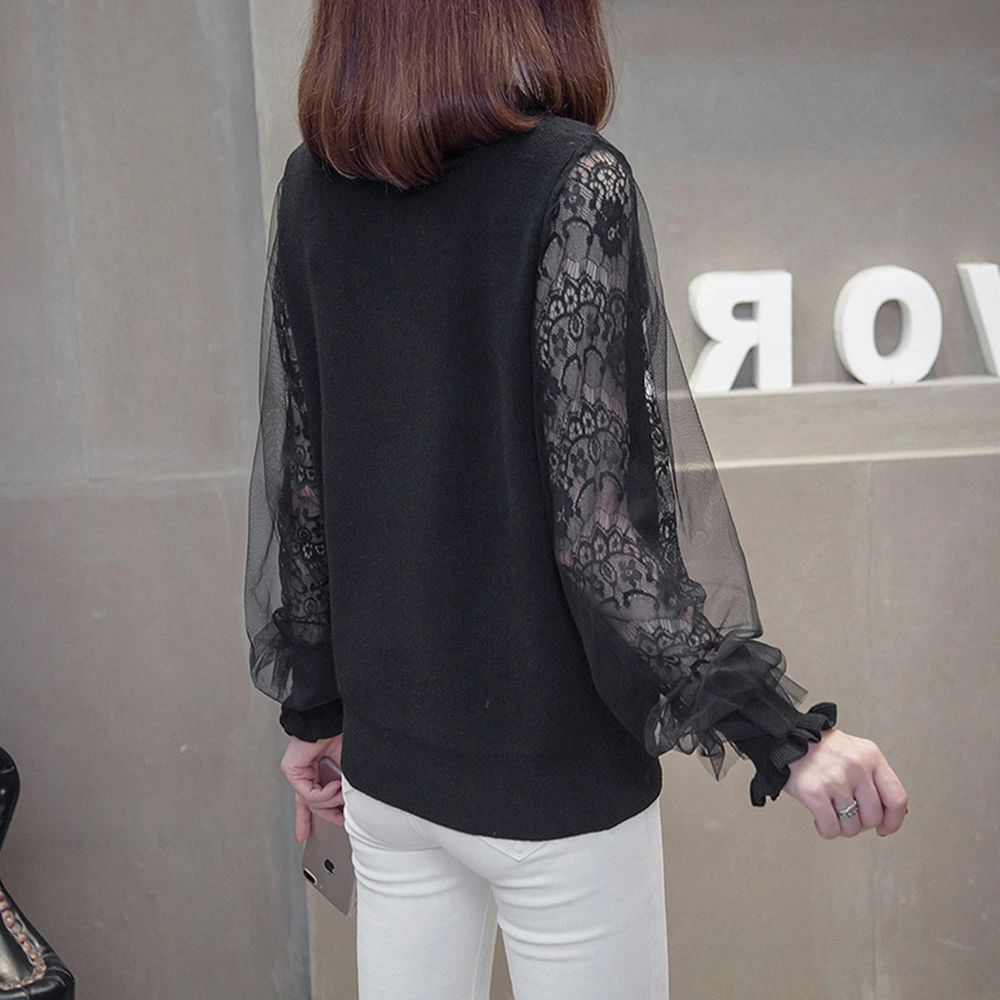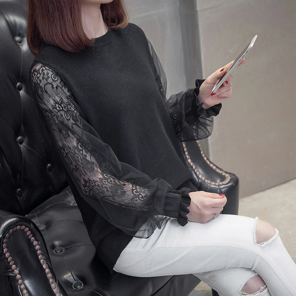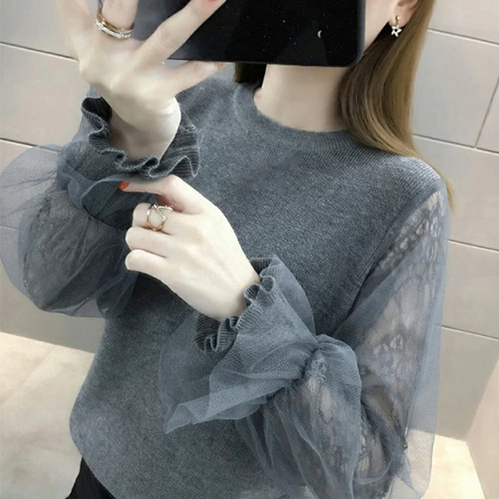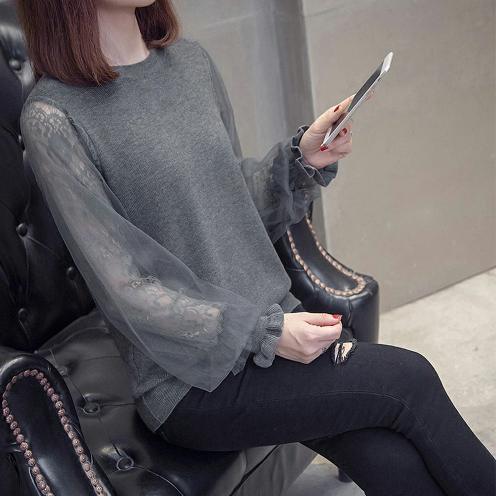 ★送料無料★ボリュームチュール素材がキュートなニットトップス♪個性的で大人可愛いスタイルに☆ 長袖 ニットカットソー トップス レディース 袖チュール切り替え カットソー おしゃれ ニットセーター 韓国ファッション 服 かわいい 可愛い おしゃれ レディースファッション カジュアル フリル レース シースルー 長袖 刺繍 ブラック ベージュ モカ グレー 大人可愛い (Q)
