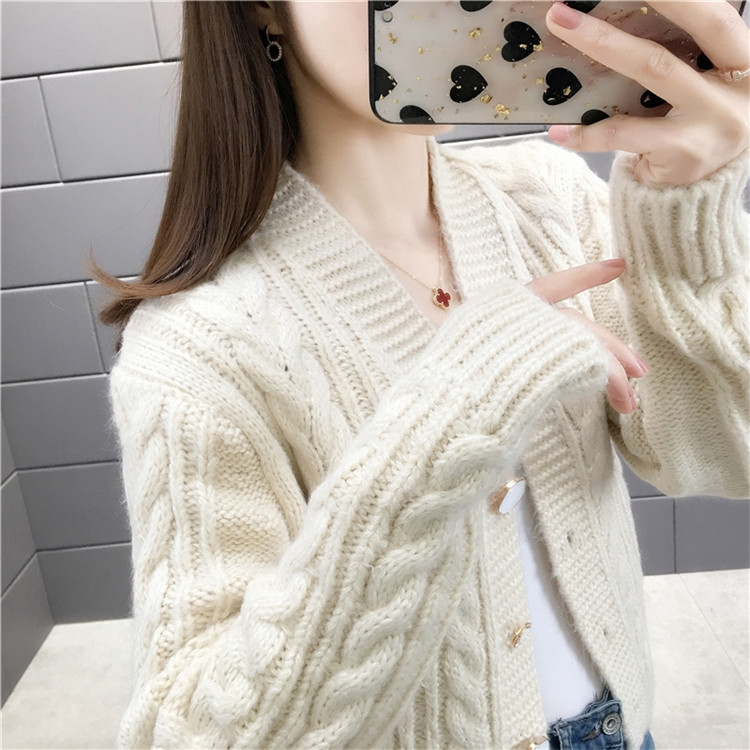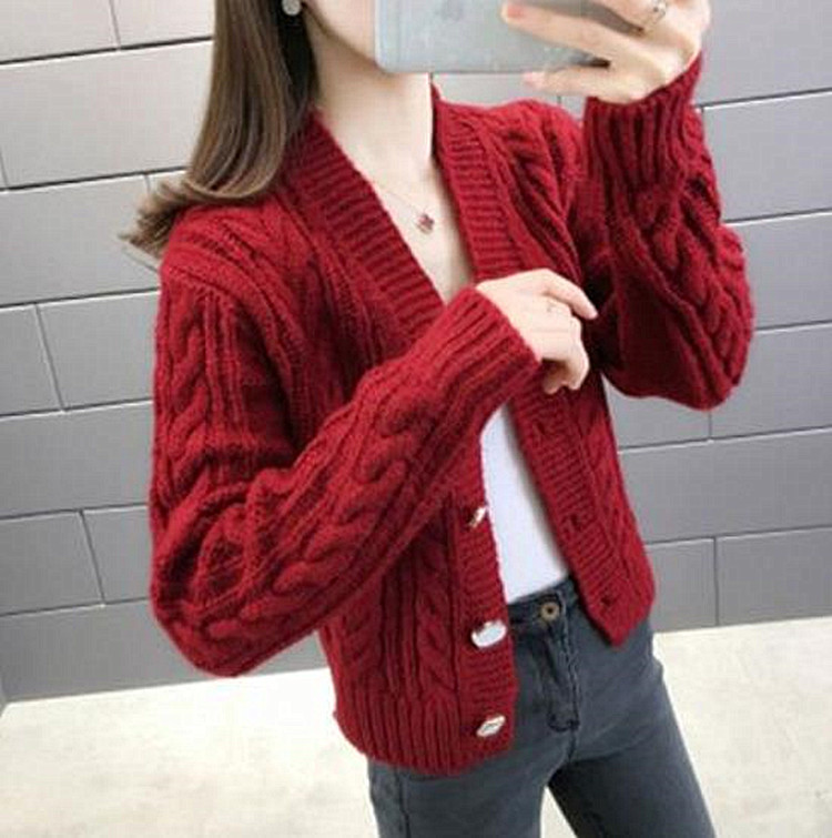 インスタ映え ウエスタン 短いスタイル ニット カーディガン オシャレ 太線 セーター