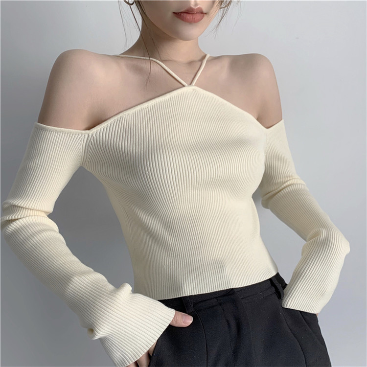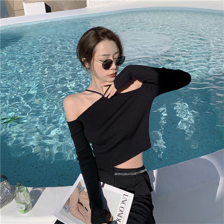 鎖骨ファイン セクシー ニット トップス 気高い 【素材】アクリル カラー:ホワイト,ブラック